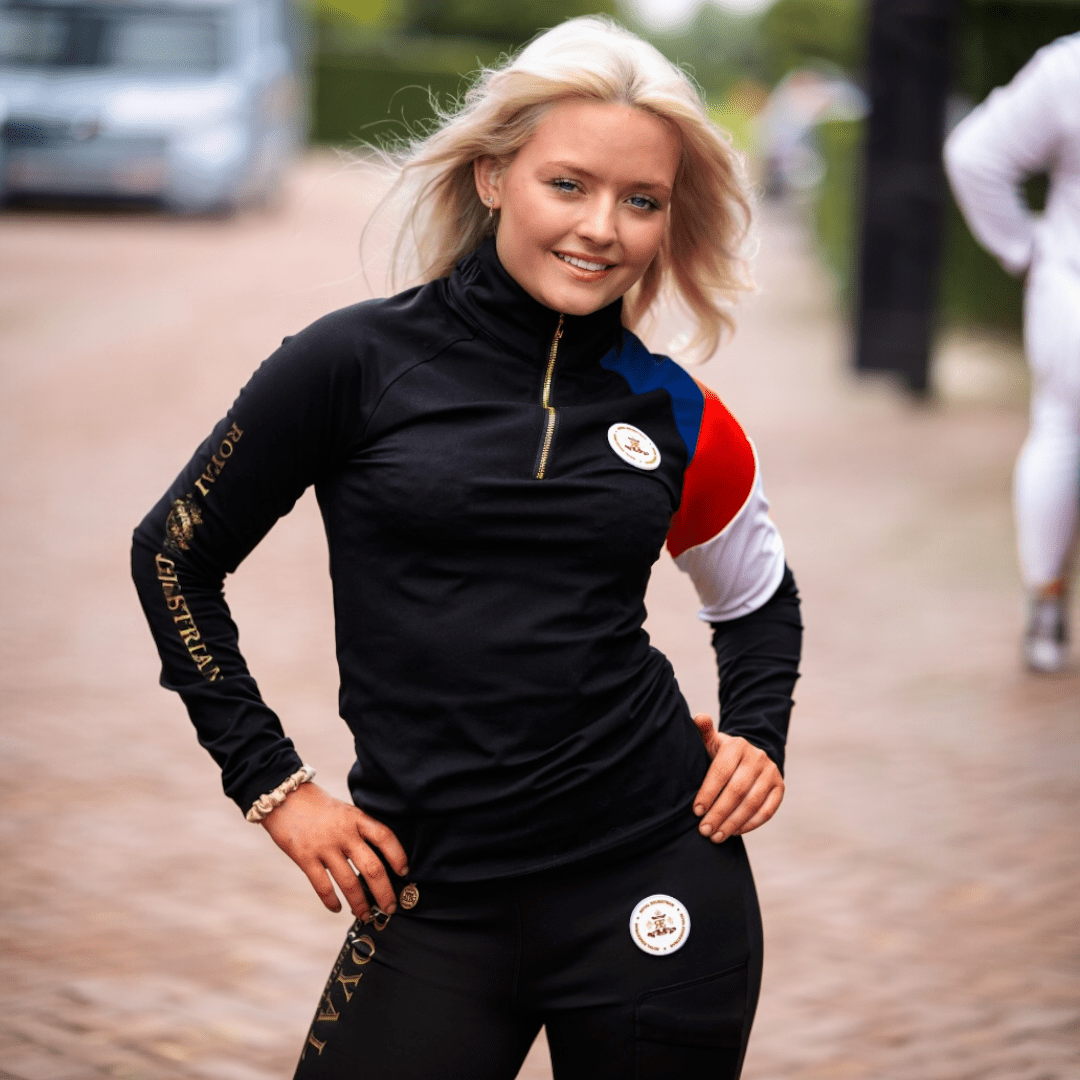 Explore the pinnacle of comfort and style with the Royal Equestrian Heritage Team Base Layer, carefully tailored for the discerning equestrian. Moreover, this technical riding top is made from a comfort stretch fabric, so it ensures full freedom of movement whether you are training or enjoying leisure riding.