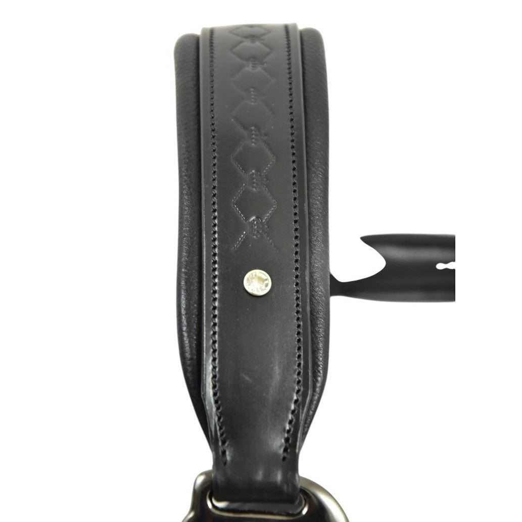 Denne halter er prydet med Swarovski-krystaldiamanter og funkler af raffinement. Det sorte, vegetabilsk farvede læder skaber en fantastisk kontrast, der gør det til et iøjnefaldende tilbehør i enhver rideudstyrskollektion.