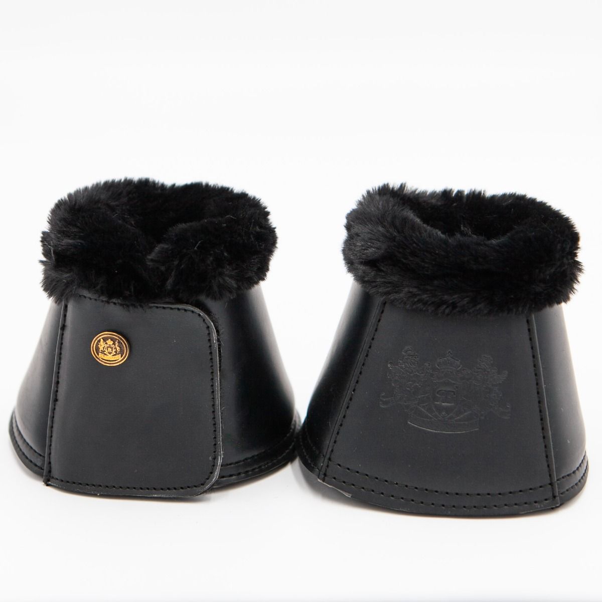 Royal Equestrian Premium polstrede bell boots med velcro-lukning. Vegansk læderoverflade og kunstig mink i øverste kant – 2-pak.