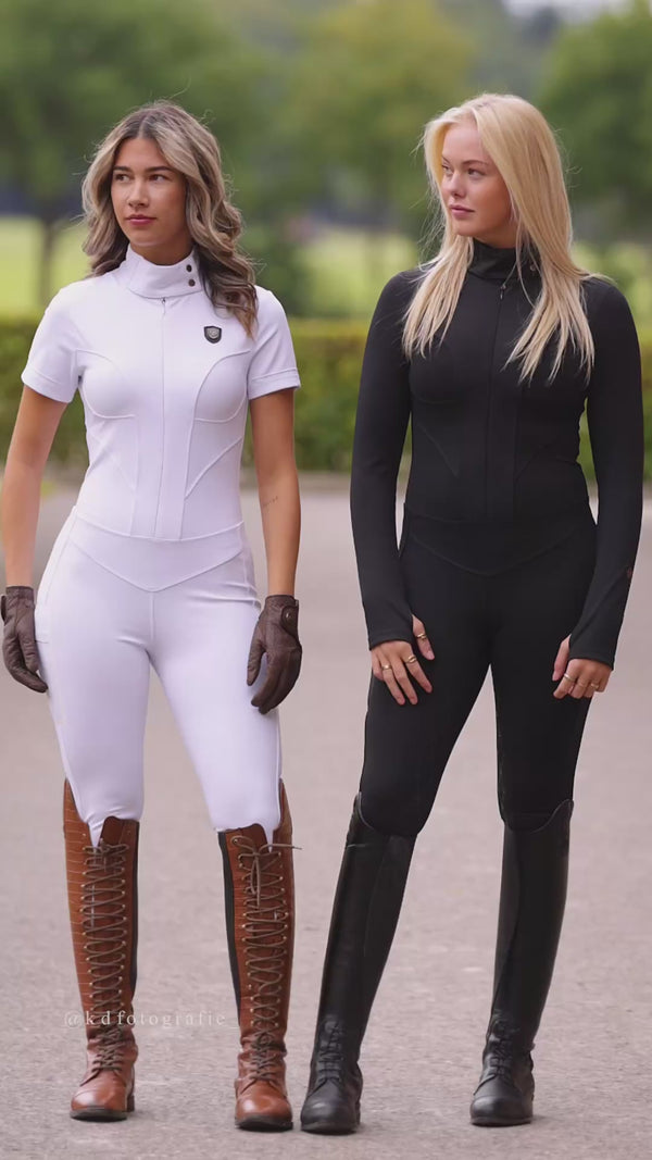 "Das Brenda Competition Shirt ist einfach wunderschön - elegante Rüschendetails, atmungsaktiver Stoff und eine perfekte Passform. Ich fühle mich selbstbewusst und klassisch im Ring!"