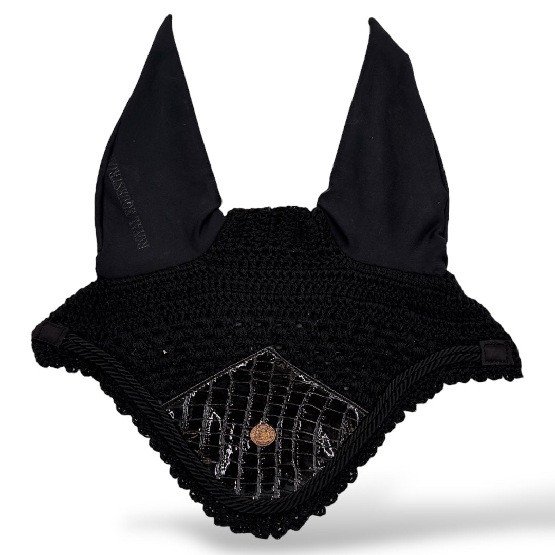 Royal Equestrian Premium Ohrenhaube Croco Schwarz Voll