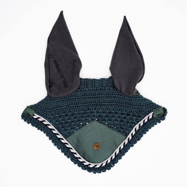 Das Markenzeichen von Royal Equestrian ist sein einzigartiges Messing-Wappenabzeichen. Diese hochwertigen, luxuriösen Ear Bonnets sind eine stilvolle Ergänzung der Kollektion.