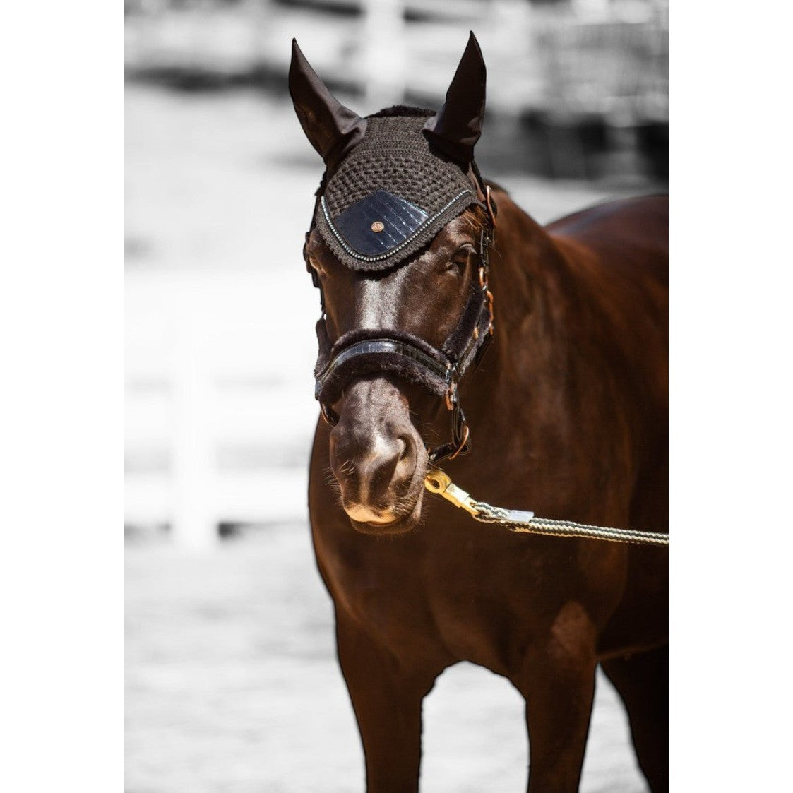 Royal Equestrian Premium Ear Bonnet Croco Black Crystal Full
