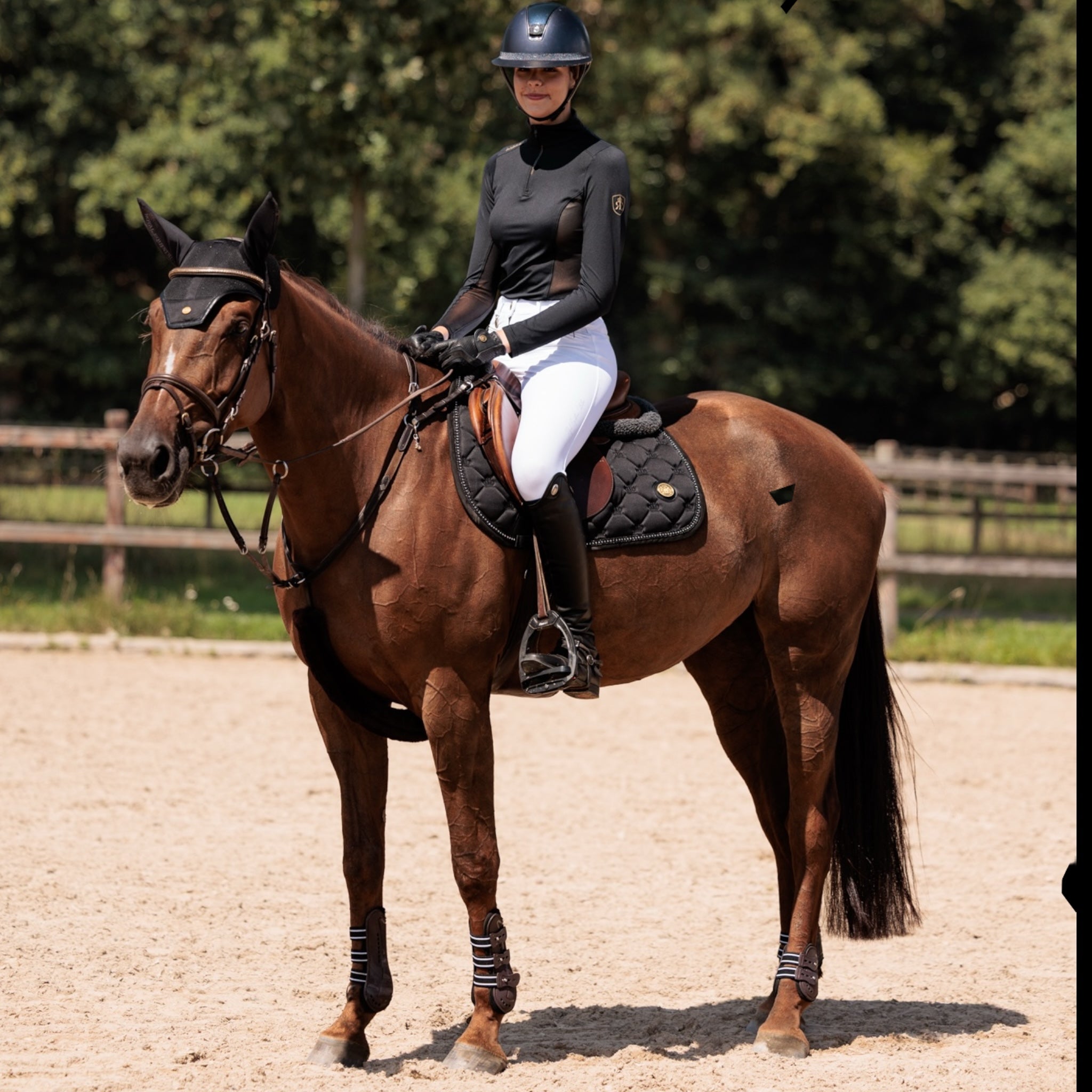 Crafted from a thermal-regulating fabric, they provide consistent comfort across all conditions. In addition, they are adorned with the luxurious hand-crafted Royal Equestrian coat of arms, symbolizing the excellence and rich heritage associated with Cecilia G.