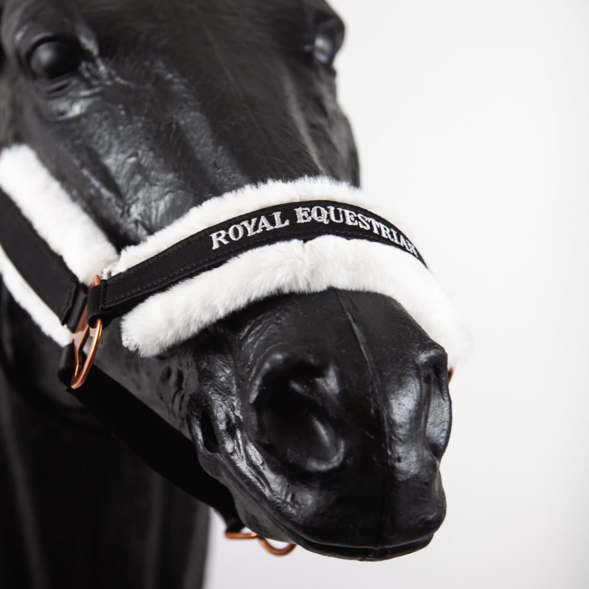 Solid metal fastenings and Royal Equestrian signature branding finish off the look of the Halter.