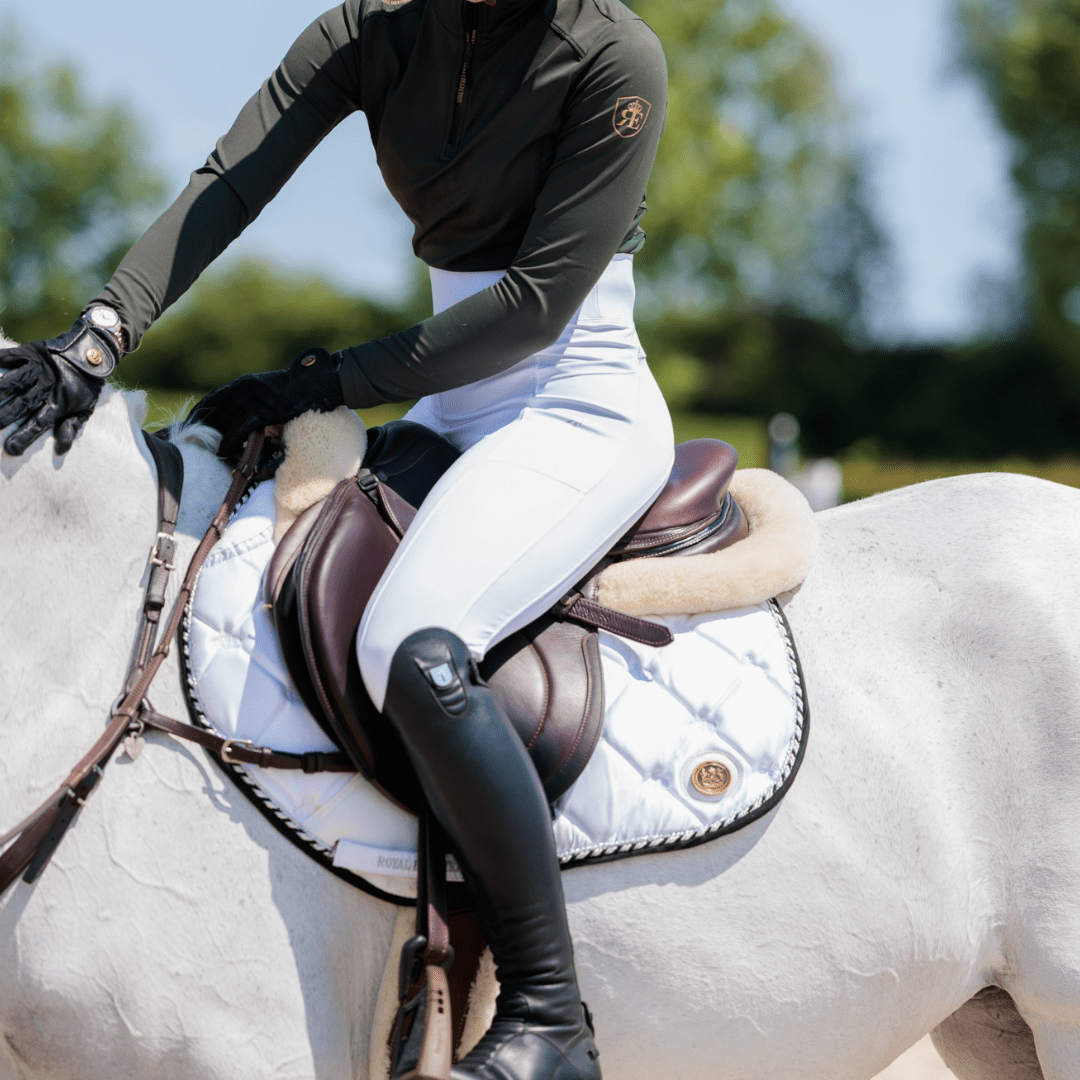 ¿Por qué elegir las mallas blancas de equitación Royal Equestrian con agarre en la rodilla?