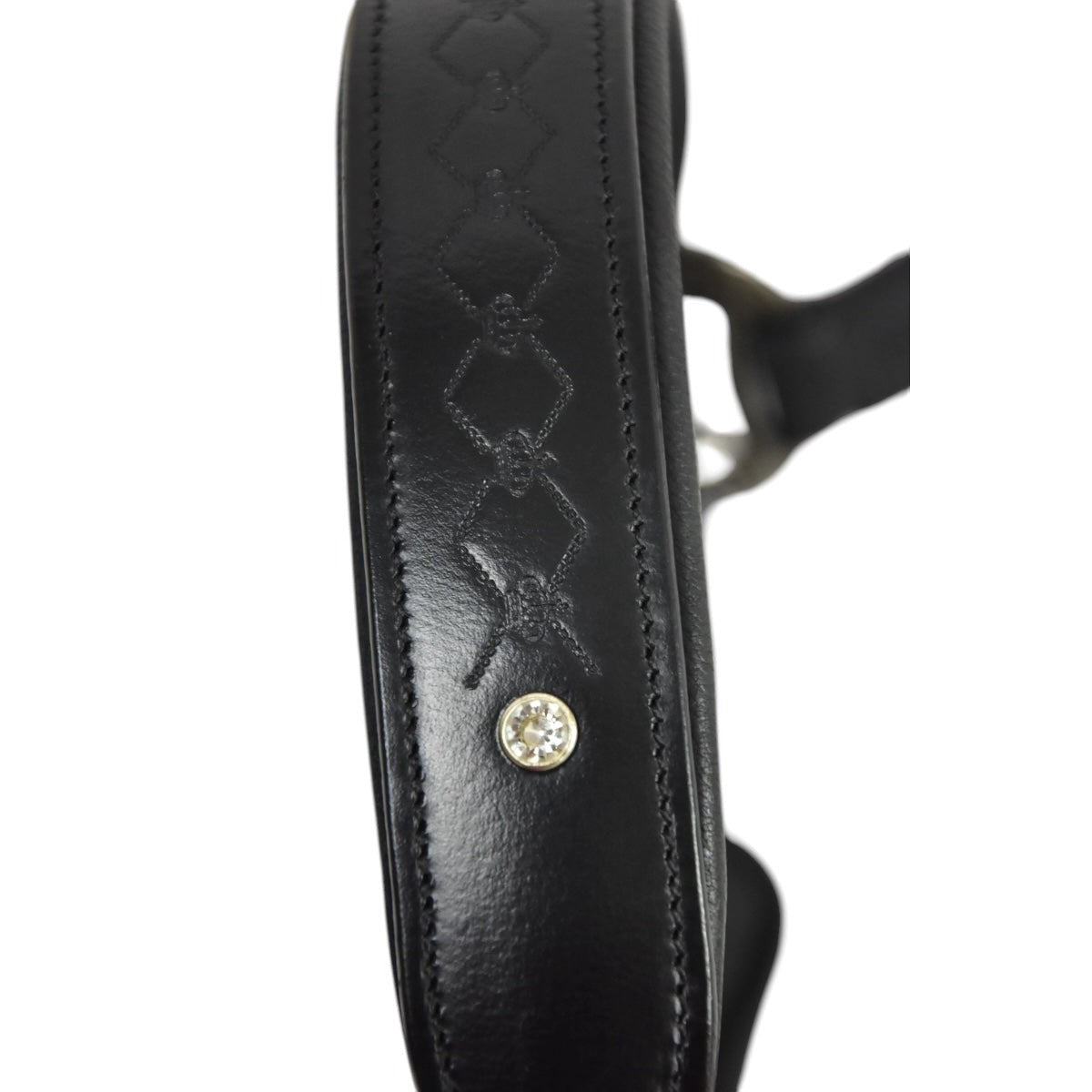 Orné de diamants en cristal Swarovski, ce licol brille par sa sophistication. Le cuir noir, teinté dans la masse, offre un contraste saisissant, ce qui en fait un accessoire de choix dans toute collection équestre.