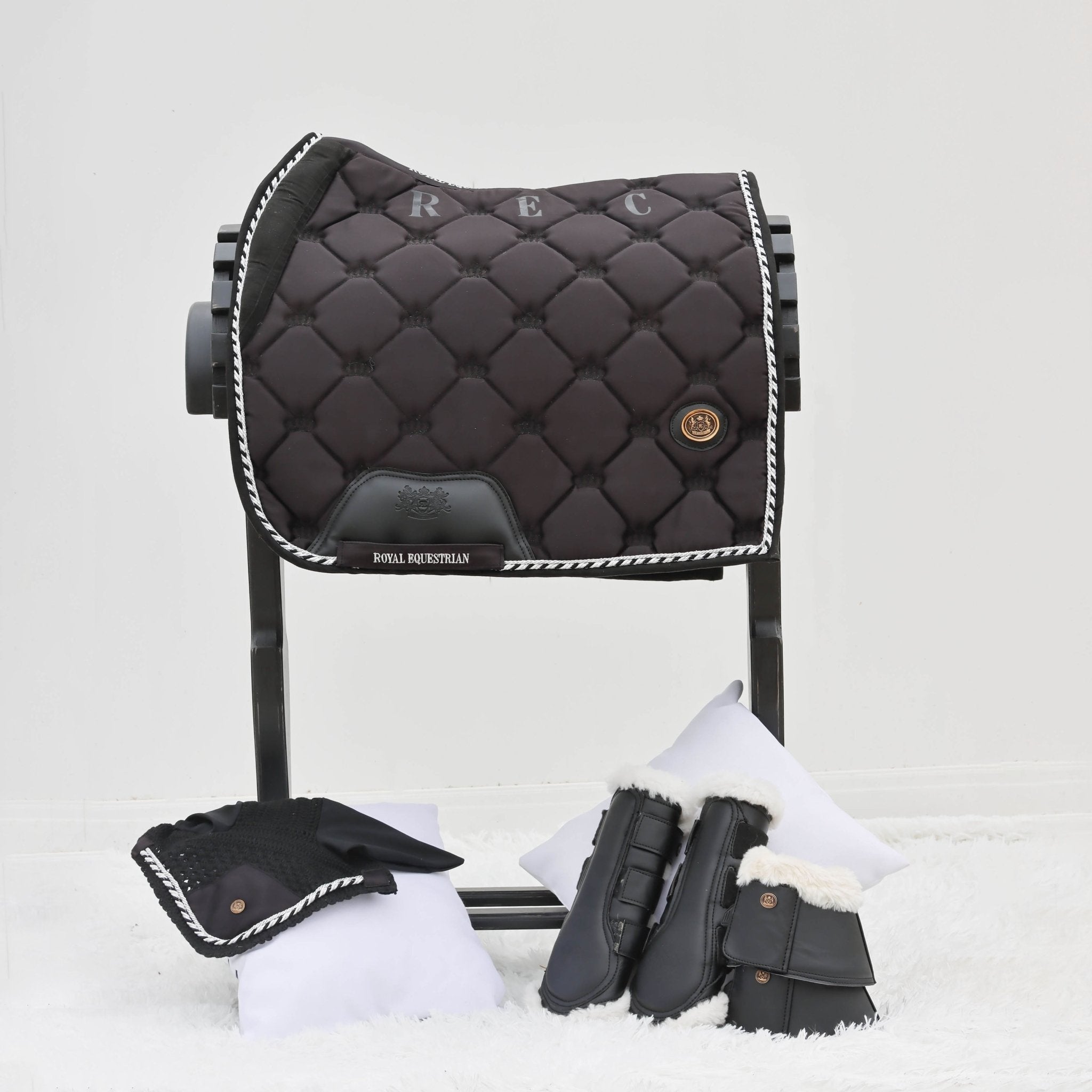 Abbina il sottosella da dressage Black Silver ad altri articoli della collezione Royal Equestrian per un look coordinato da competizione. In questo modo potrai goderti eleganza, comfort e prestazioni in ogni uscita.