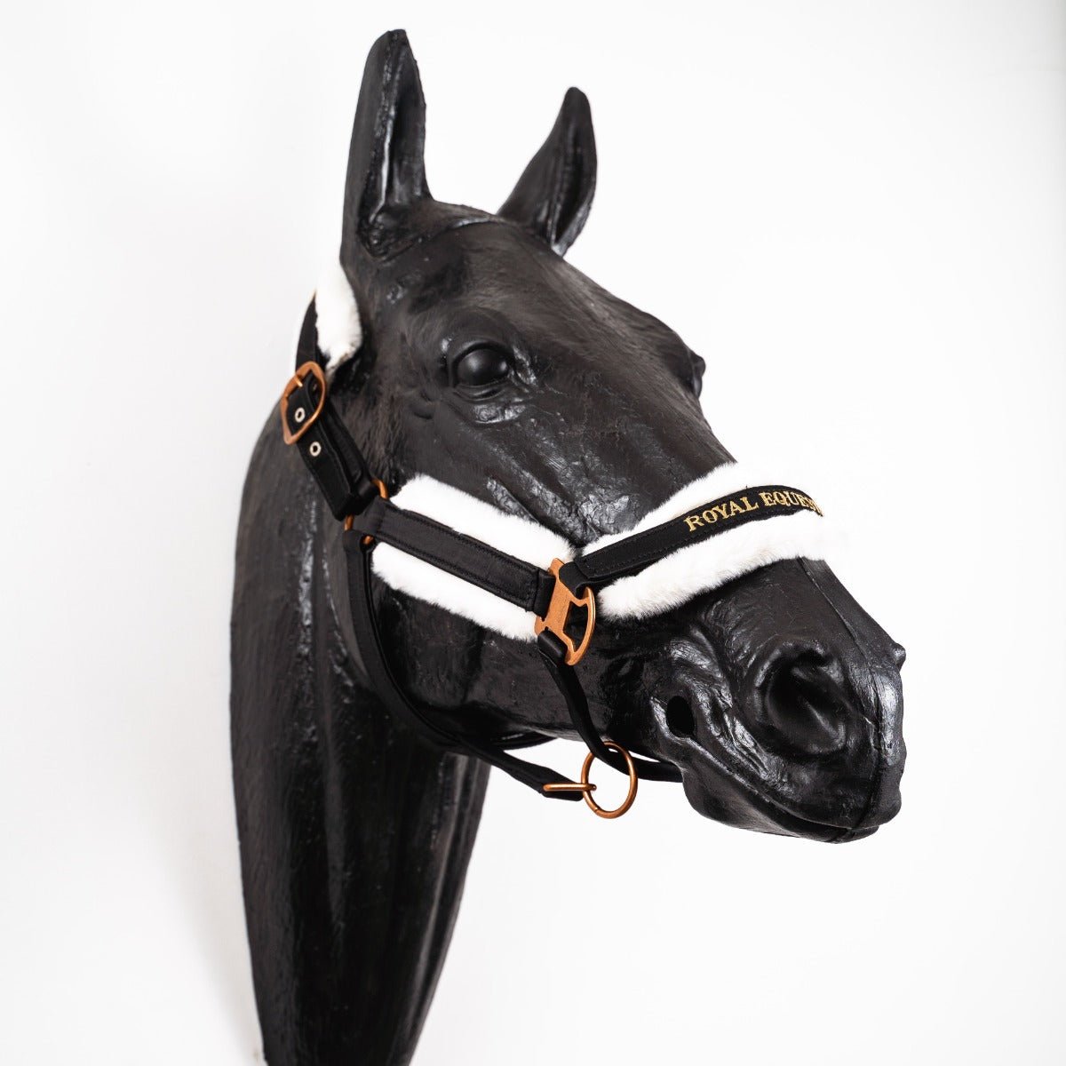 Stevige metalen sluitingen en de Royal Equestrian handtekening maken de look van het halster af.