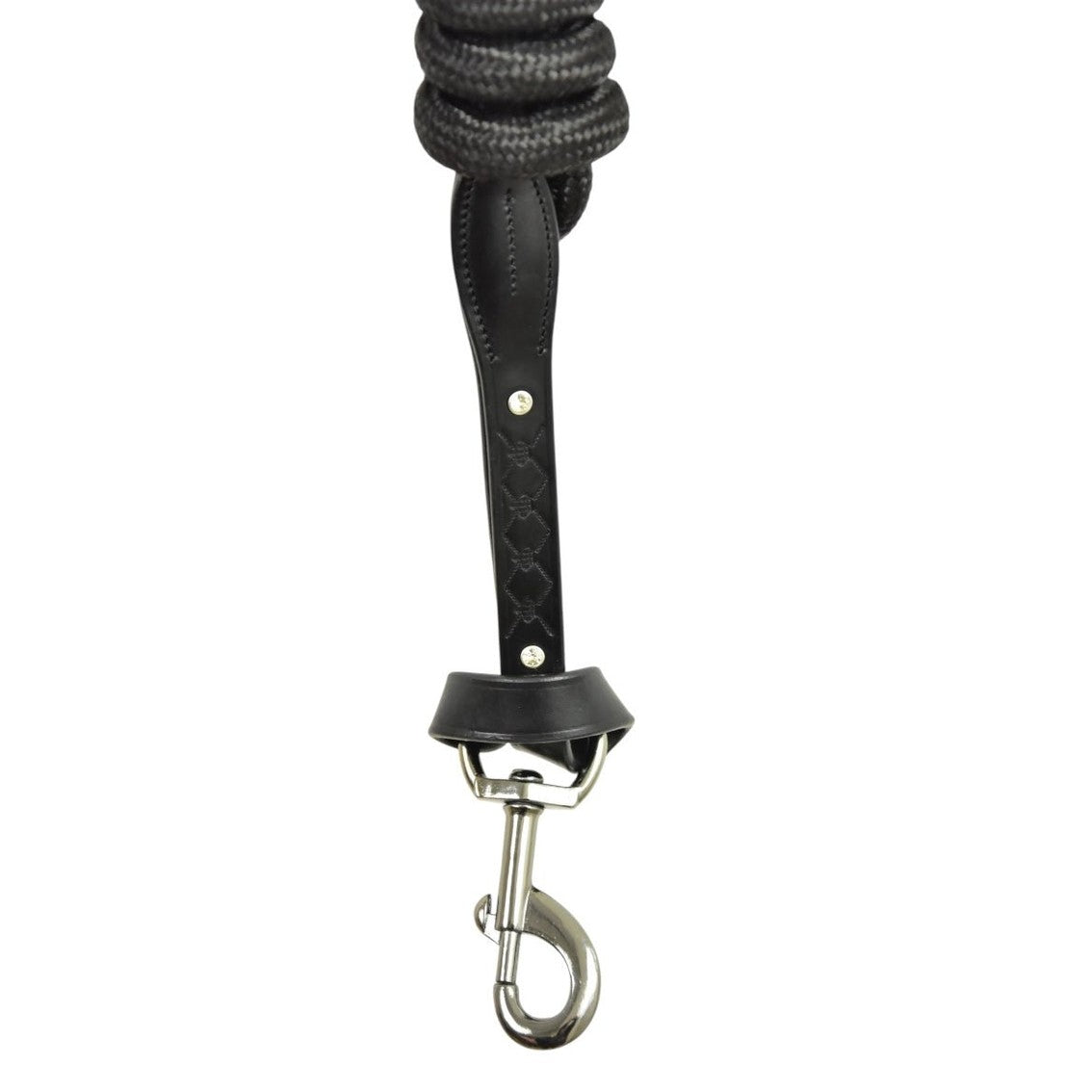 Laget av et sterkt, vevd tau av høy kvalitet i dyp svart, passer den perfekt til Royal Equestrians eksklusive joggefarger. Elegante skinndetaljer både på hale- og endeløkken er forbedret med vår signaturdiamantsømmer og aksentnagle , noe som gir et raffinert preg som vil tiltrekke seg oppmerksomhet i showringen eller under daglig håndtering.