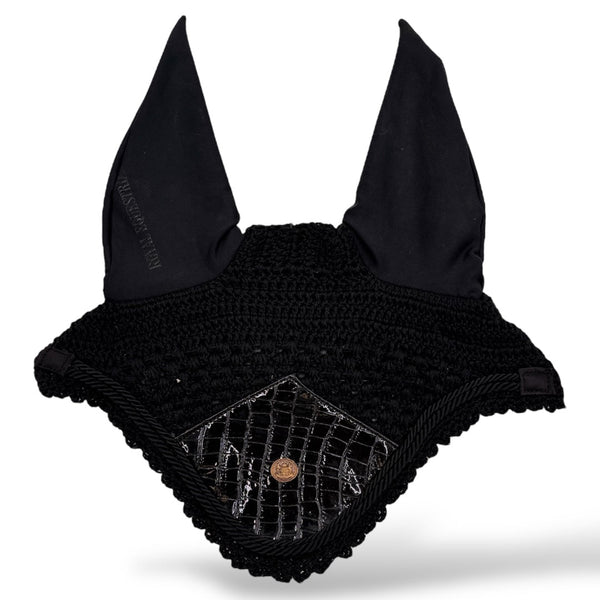 Royal Equestrian Premium ørehette Croco Black Crystal Full