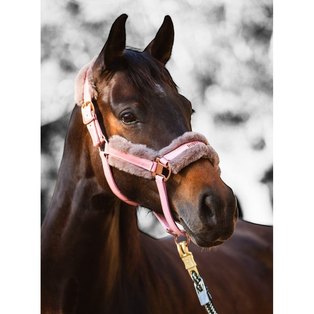 En högkvalitativ, slitstark halster med mjuk konstgjord minkpäls för ultimat komfort. Justerbar på båda sidor av pannan och nosremmen för perfekt passform.